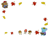 ・ 赤・黄の落ち葉が囲むやさしい秋色フレームデザイン