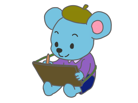 ベレー帽のねずみ画家さん(カラーイラスト)