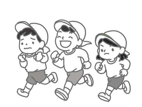 朝マラソンをがんばる子どもたち(モノクロ・線画)