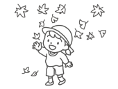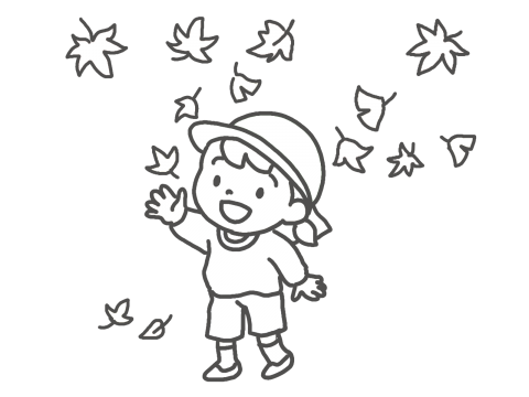秋の落ち葉を見上げる園児(保育・園だよりカット)