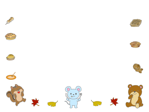 秋のおやつと森の動物たちのフレーム(かわいい園だより用)