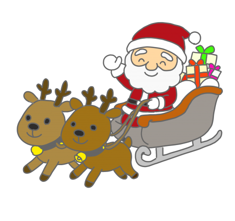 サンタさんがトナカイのそりに乗ってプレゼントを届ける、かわいいクリスマスのイラストです。