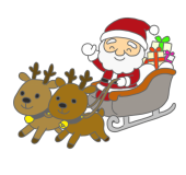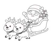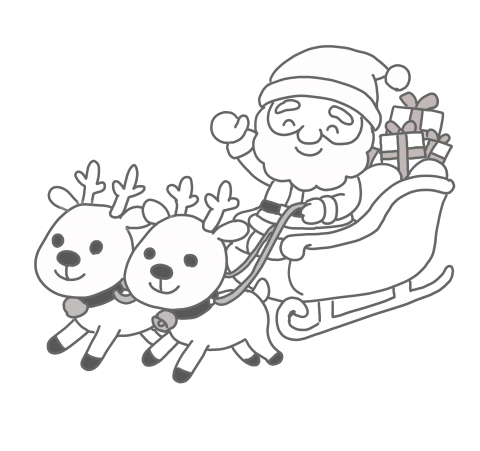 サンタクロースとトナカイのそり/クリスマス会・園だより・12月の無料イラスト(カラー&モノクロ)