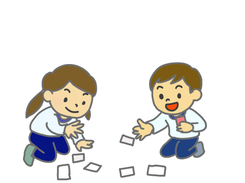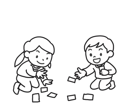 カード(かるたやトランプなど)を使って遊ぶ幼児2人のイラストです。