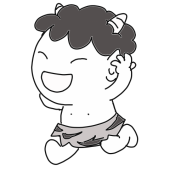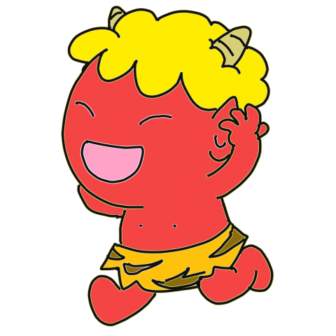 やさしい表情で、怖すぎない鬼として描いているため、
