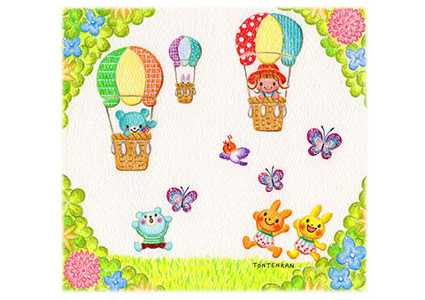 「おやつ」や「こども」など、手描きの「色えんぴつ画」ならではの、あたたかみのある作品を描いています。