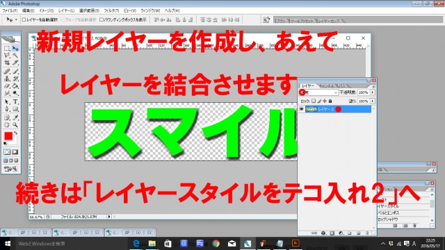 新規レイヤーを作成し、レイヤースタイルを適用したレイヤーと結合させる事によりレイヤースタイルも結合されます。この時点でレイヤースタイルを使ったように見えますがレイヤースタイルは消えています。