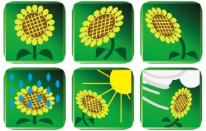 天気アイコンデザインをまとめました。快晴 晴 曇り 雨です。天気素材として使ってください。可愛らしさをポイントに作成しました。