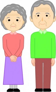 仲良く立っている夫婦のおじいさん、おばあさんです。