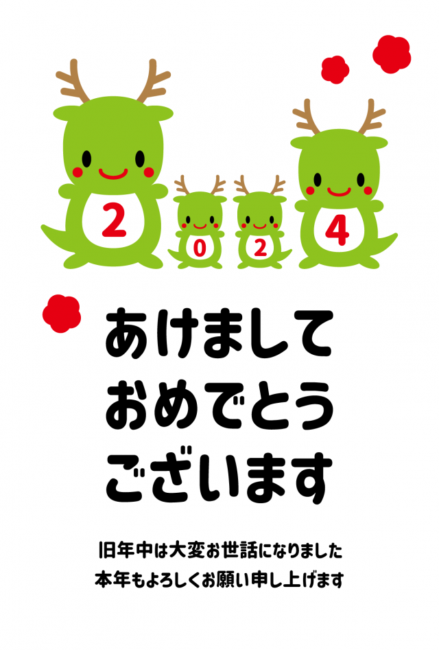 1_2024年年賀状_辰年・かわいい龍・あけましておめでとうございます・4人家族に関連するまとめ
