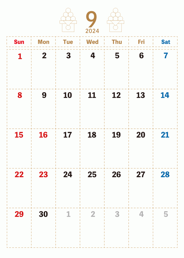 ドット線柄 2024年9月 カレンダー お月見団子