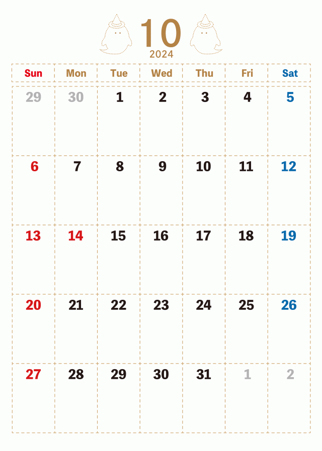 ドット線柄 2024年10月 カレンダー おばけに関連するまとめ