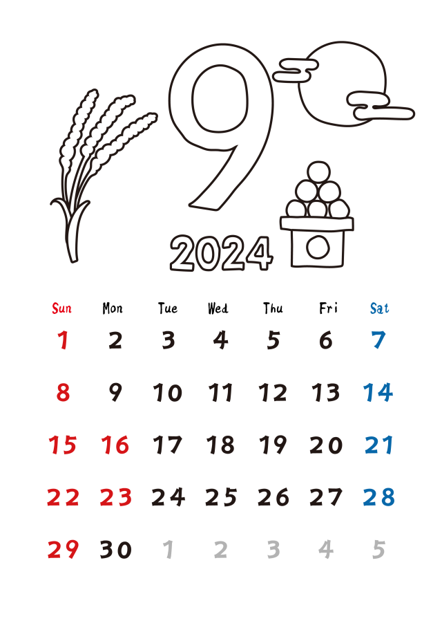 ぬり絵 2024年9月 カレンダー お月見