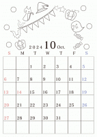 季節のぬりえが出来る2024年10月のカレンダー 縦型