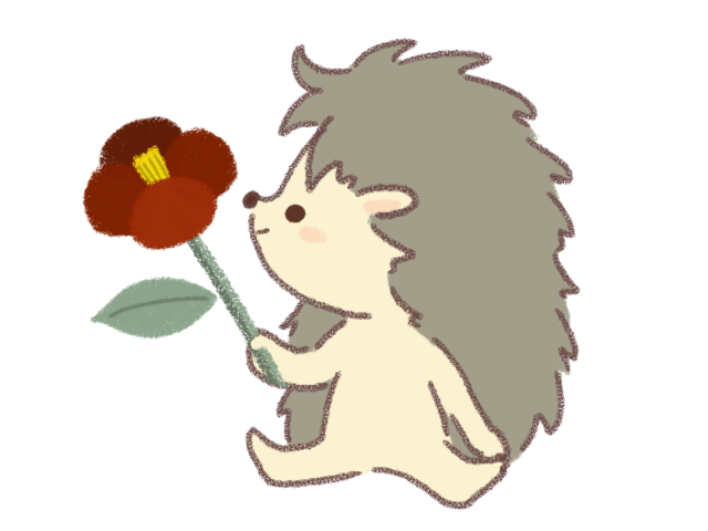椿の花を持つハリネズミのイラストに関連するまとめ