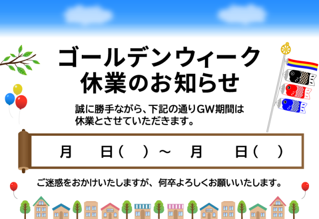 GW休業のお知らせ(鯉のぼり・街)に関連するまとめ