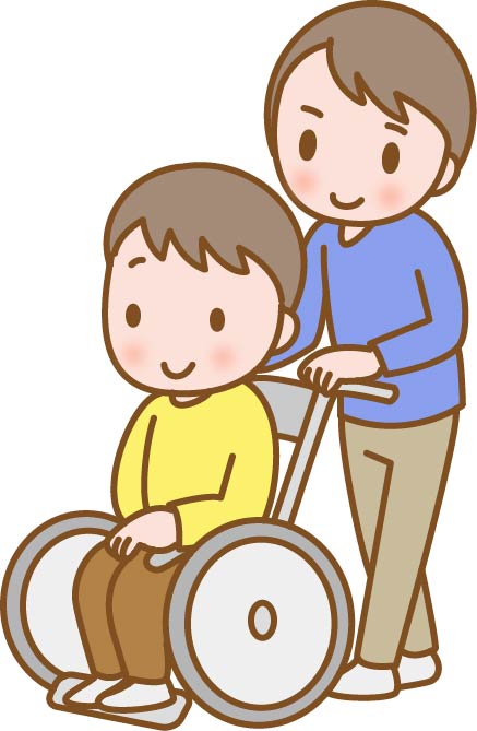 介護のイラスト、車いすを押す男性介護士と高齢者に関連するまとめ