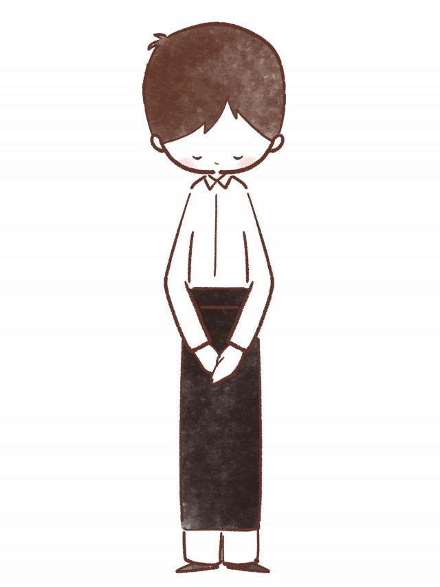 エプロンをしてお辞儀をする男性のイラストに関連するまとめ