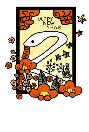 - 花札風イラスト素敵です。白へびがよく映えます。年賀状に使わせていただきます。