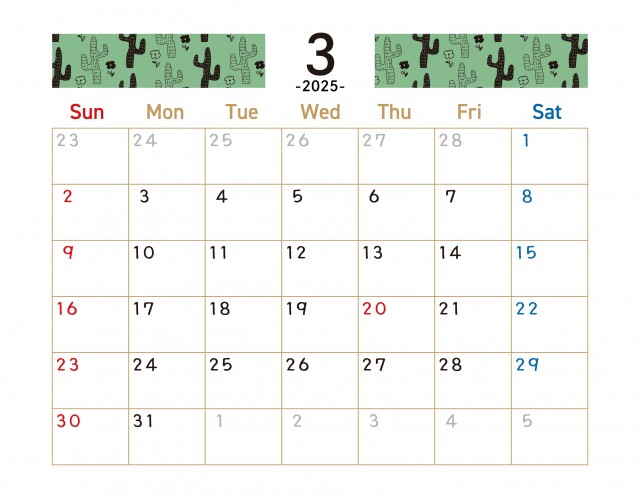 手描きの模様 2025年3月カレンダー サボテンに関連するまとめ