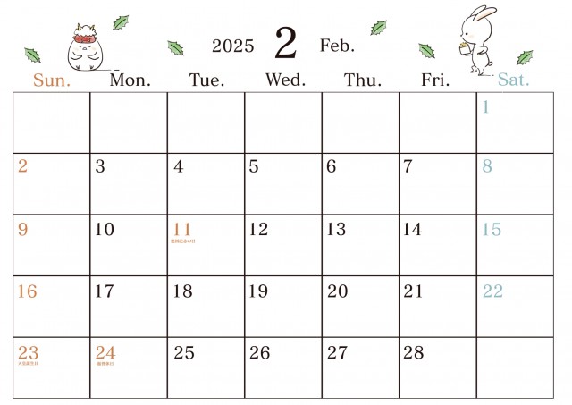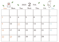 2025年2月のカレンダー 季節を楽しむ動物たち