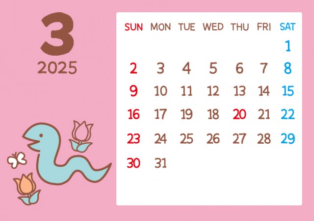 蛇の2025年 3月横向きカレンダーに関連するまとめ