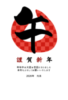 「午」の筆文字と馬蹄のシルエットを取り入れた、和風なデザインです。