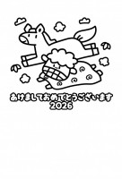ぬりえ年賀状 かわいい干支の馬と獅子舞