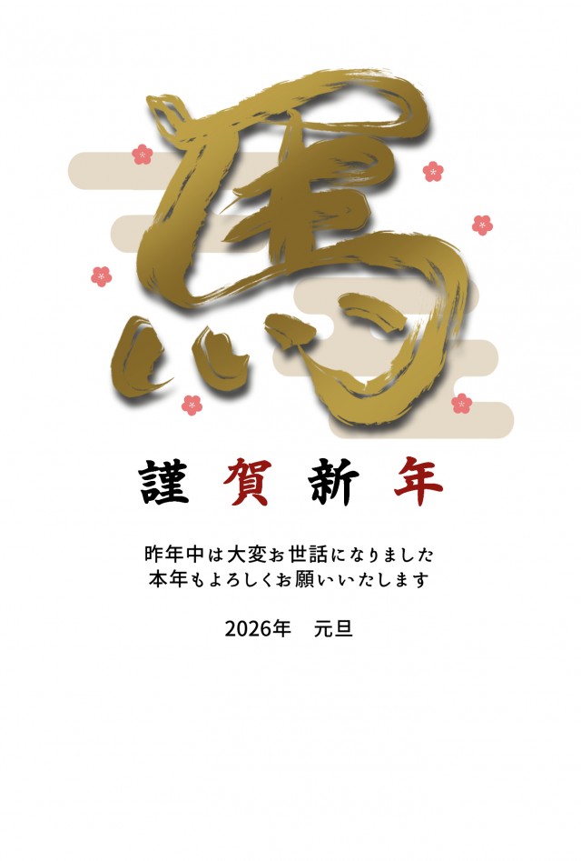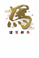筆文字の「馬」がメインの、和風で華やかなデザインです。