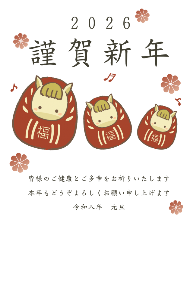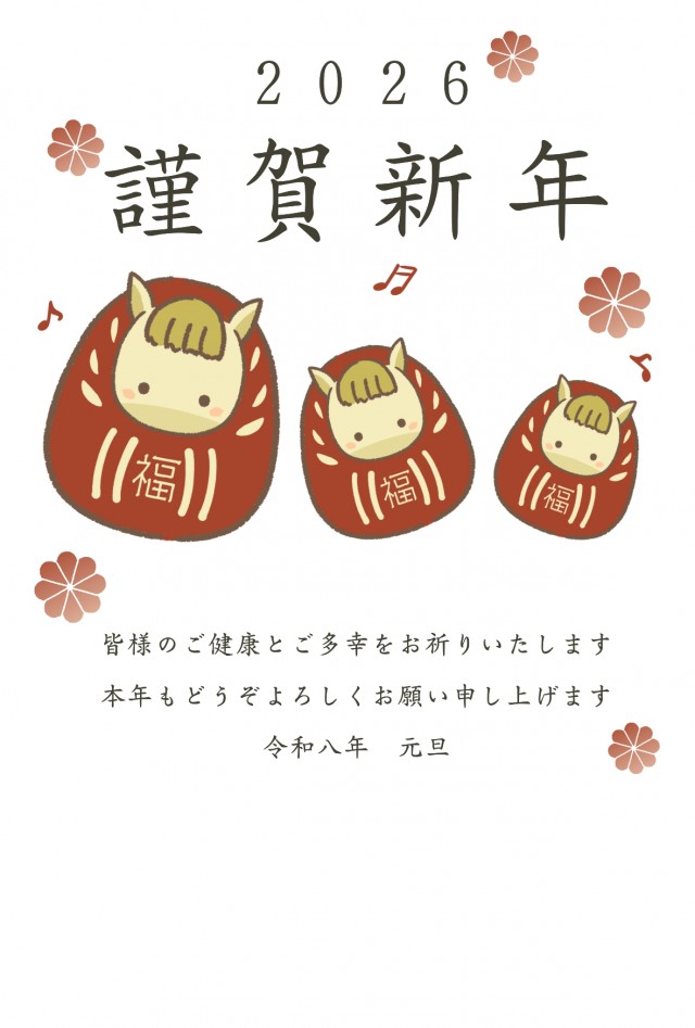 2026年 3つ並んだ馬だるまと花の年賀状に関連するまとめ
