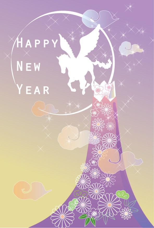 おしゃれ年賀状 ペガサスと富士山 紫に関連するまとめ