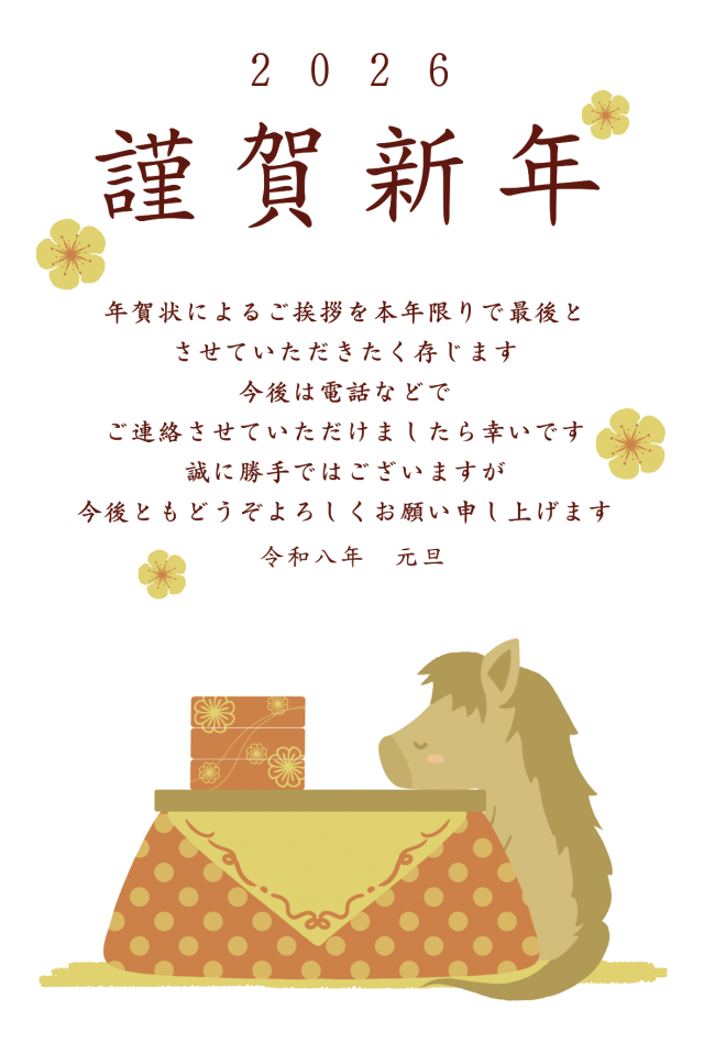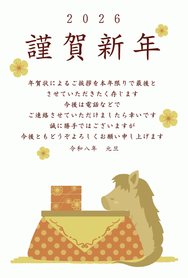 2026年 おせちを置いてこたつで眠る馬の年賀状に関連するまとめ