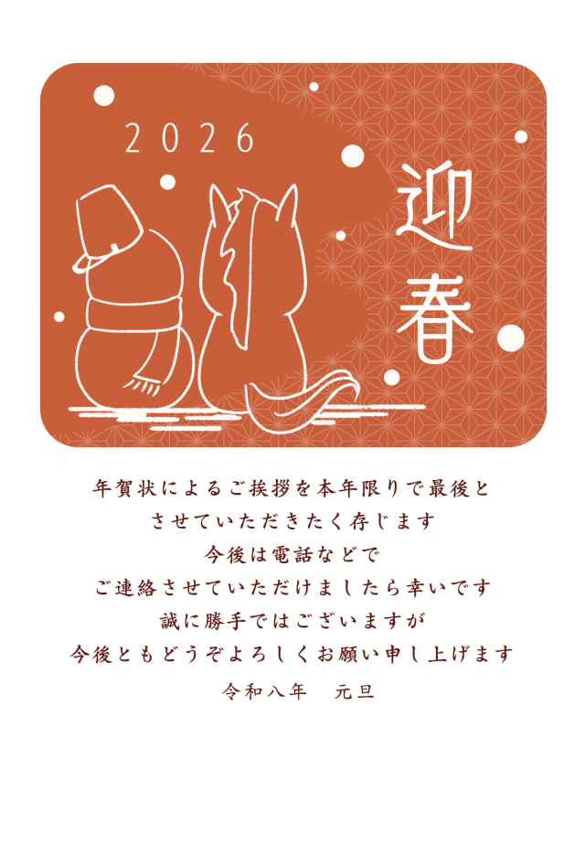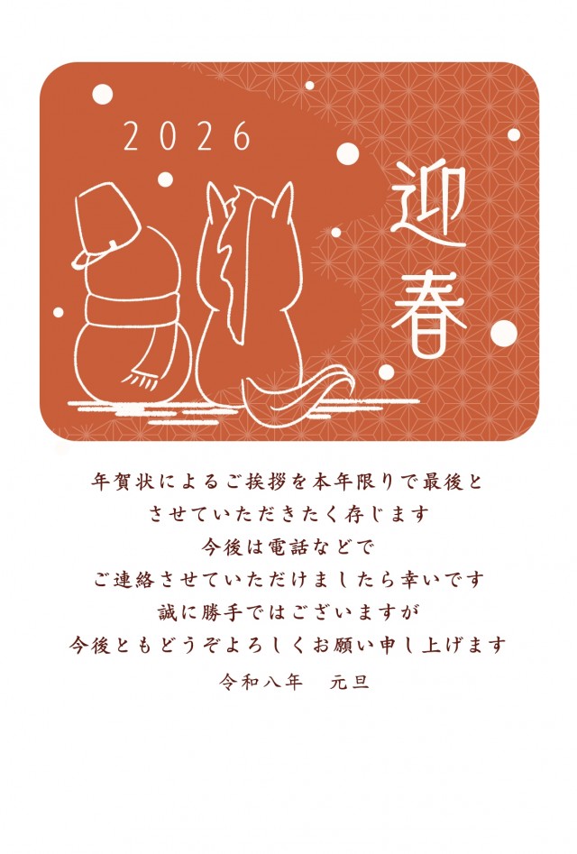 2026年の年賀状 並んで座る雪だるまと馬の後ろ姿に関連するまとめ