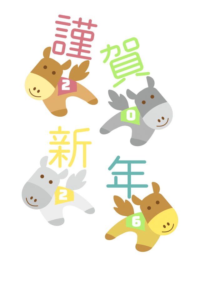 年賀状 2026 競馬風年賀状のイラストです。年賀はがきの縦サイズの比率で作成しています。他にも…