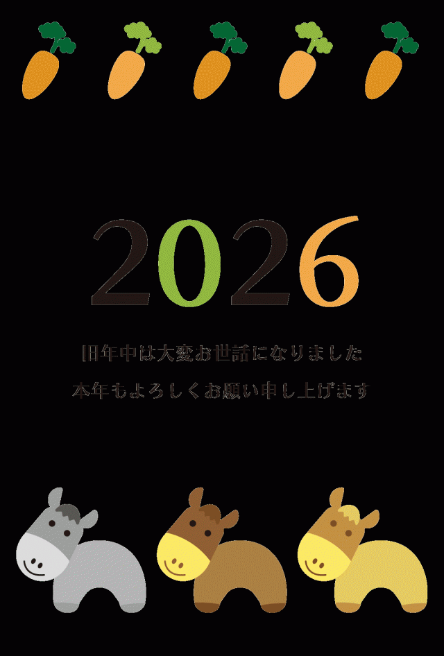 年賀状 2026 三頭の笑顔の馬の年賀状(文字ありなし)に関連するまとめ