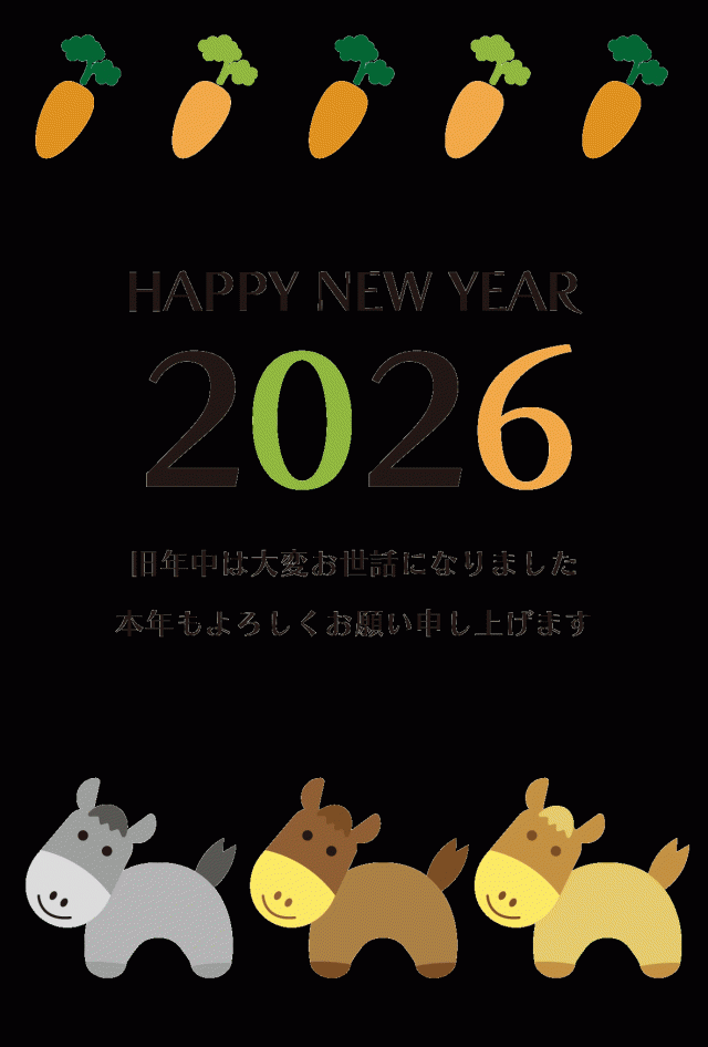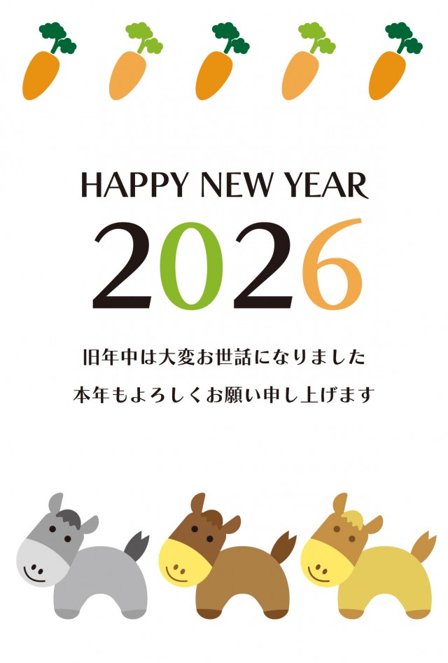 - にんじんと馬のイラストがとてもかわいらしく、子供たちに送る年賀状に使わせていただきます
