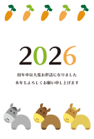 「年賀状 2026 三頭の笑顔の馬の年賀状(文字ありなし)」の無料イラスト素材・雛形素材、無料で使える「年賀状 2026 三頭の笑顔の馬の年賀状(文字ありなし)」を簡単ダウンロード出来ます。 素材ラボは「無料 イラスト」サイトとなり沢山の無料で使える素材がご利用頂けます。 「年賀状 2026 三頭の笑顔の馬の年賀状(文字ありなし)」の投稿は「おーとみーるこ」様よりご利用ありがとうございます。 ご投稿頂きました沢山の「年賀状」、「年賀はがき」、「午年」より探す。 「年賀状 2026 三頭の笑顔の馬の年賀状(文字ありなし)」関連の無料イラスト素材・雛形素材を投稿する事でポイントが獲得出来たり無料で「年賀状」、「年賀はがき」、「午年」関連の素材等を利用する、事が可能となります。 利用をする方は「会員登録(無料)」より「年賀状・はがき」関連を投稿で出来る方は「イラストレーター様登録」よりご登録くださいませ。 「年賀状・はがき」は日々イラストレーター様より最新の無料イラストが投稿されております。