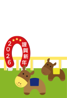 年賀状 2026 踊る馬の楽しい年賀状のイラストです。年賀はがきの縦サイズの比率で作成しています…