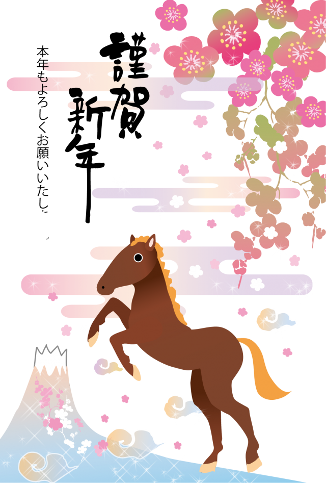 和風年賀状 嘶く馬と富士山と梅に関連するまとめ