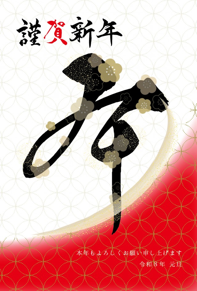 2026年午年年賀状テンプレート 和風な背景の午の筆文字に関連するまとめ