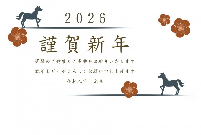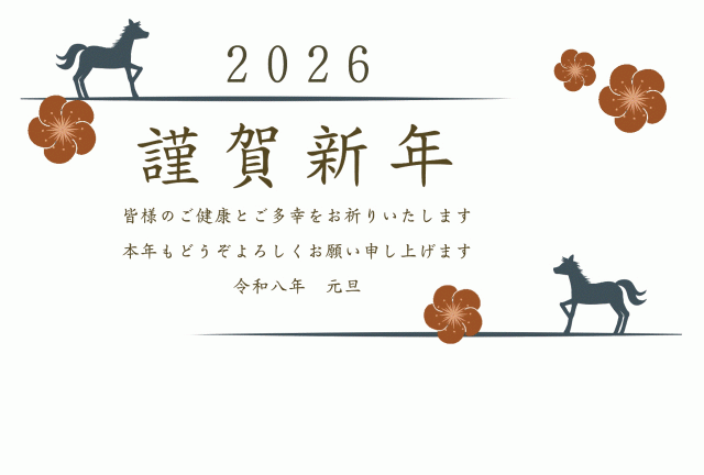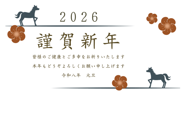 2026年の年賀状 歩く馬と赤い梅の花に関連するまとめ