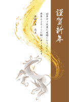 年賀状 2026 二頭の馬と謹賀新年の文字の年賀状(文字ありなし)のイラストです。年賀はがきの縦…