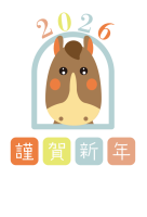 年賀状 2026 窓から顔を出した馬の年賀状(文字ありなし)