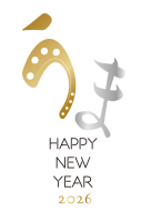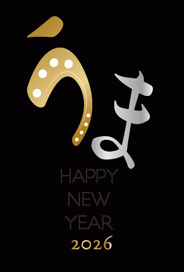 年賀状 2026 蹄鉄をモチーフにしたひらがなのうまの年賀状