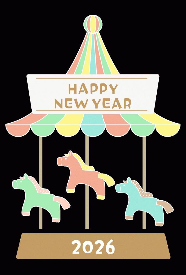 年賀状 2026 パステルカラーのメリーゴーランド年賀状