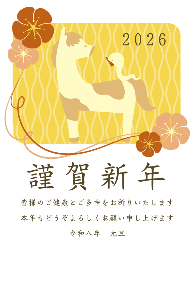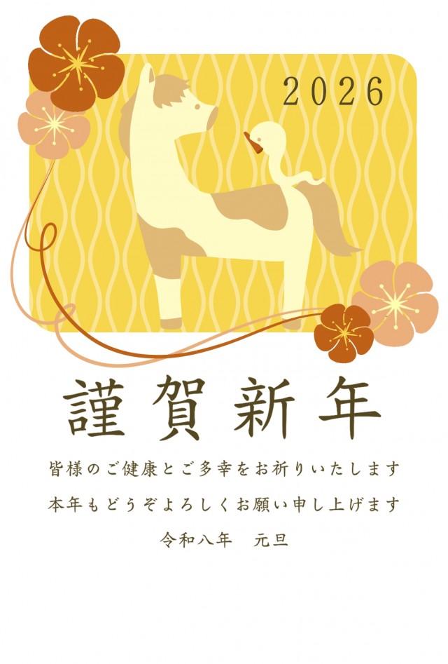 こちらは歩く馬と赤い梅の花が描かれた年賀状です。たくさんあるイラストの中からみつけていただきあり…