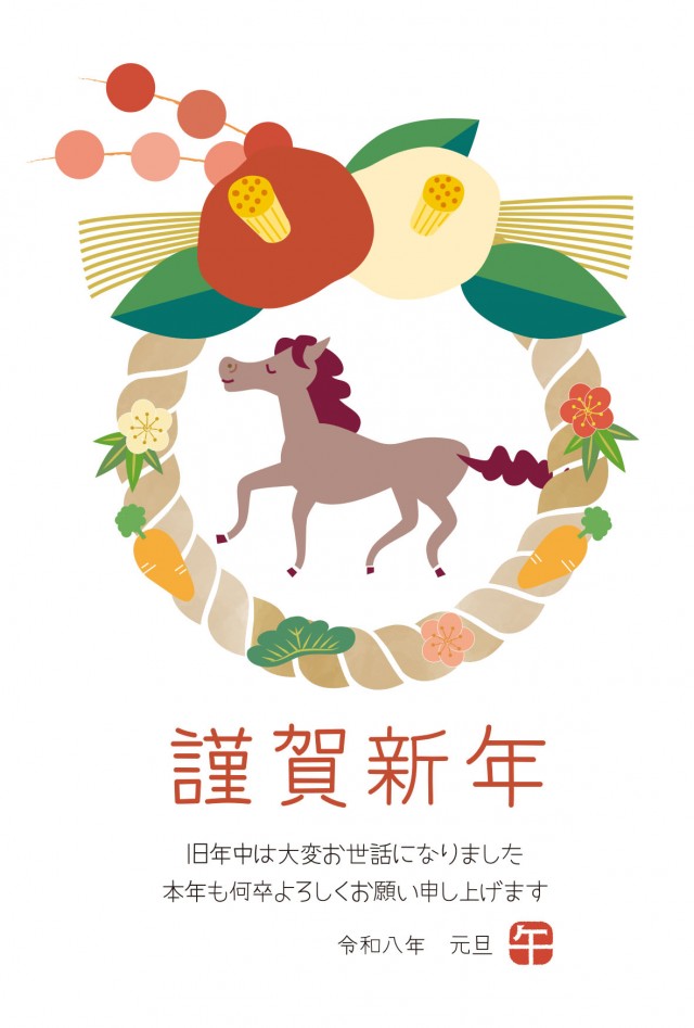 正月リースの中に可愛い馬がいる年賀状2026に関連するまとめ
