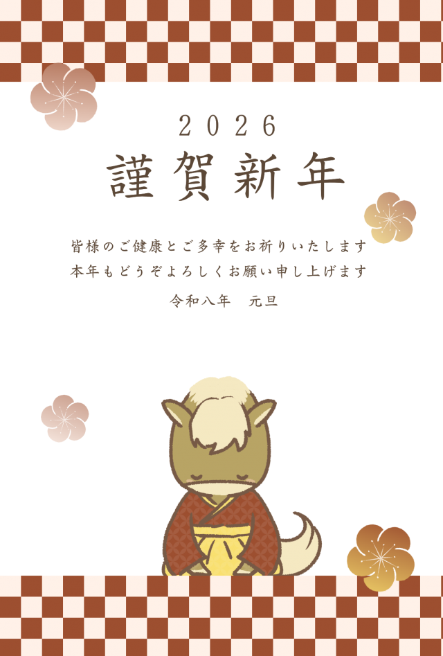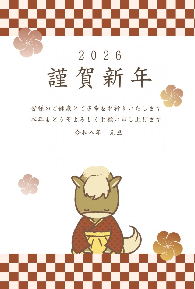 「2026年 袴姿で挨拶をする馬の年賀状」の無料イラスト素材・雛形素材、無料で使える「2026年 袴姿で挨拶をする馬の年賀状」を簡単ダウンロード出来ます。 素材ラボは「無料 イラスト」サイトとなり沢山の無料で使える素材がご利用頂けます。 「2026年 袴姿で挨拶をする馬の年賀状」の投稿は「RinM」様よりご利用ありがとうございます。 ご投稿頂きました沢山の「馬」、「子供」、「市松模様」より探す。 「2026年 袴姿で挨拶をする馬の年賀状」関連の無料イラスト素材・雛形素材を投稿する事でポイントが獲得出来たり無料で「馬」、「子供」、「市松模様」関連の素材等を利用する、事が可能となります。 利用をする方は「会員登録(無料)」より「年賀状・はがき」関連を投稿で出来る方は「イラストレーター様登録」よりご登録くださいませ。 「年賀状・はがき」は日々イラストレーター様より最新の無料イラストが投稿されております。