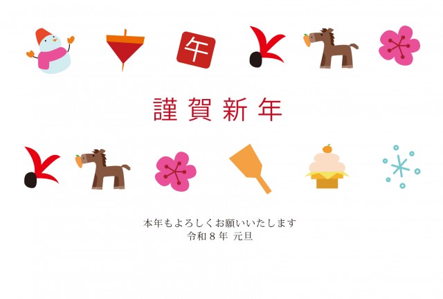 「2026年 午デザイン年賀状」の無料イラスト素材・雛形素材、無料で使える「2026年 午デザイン年賀状」を簡単ダウンロード出来ます。 素材ラボは「無料 イラスト」サイトとなり沢山の無料で使える素材がご利用頂けます。 「2026年 午デザイン年賀状」の投稿は「ruー」様よりご利用ありがとうございます。 ご投稿頂きました沢山の「デザイン」、「年賀状」、「馬」より探す。 「2026年 午デザイン年賀状」関連の無料イラスト素材・雛形素材を投稿する事でポイントが獲得出来たり無料で「デザイン」、「年賀状」、「馬」関連の素材等を利用する、事が可能となります。 利用をする方は「会員登録(無料)」より「年賀状・はがき」関連を投稿で出来る方は「イラストレーター様登録」よりご登録くださいませ。 「年賀状・はがき」は日々イラストレーター様より最新の無料イラストが投稿されております。