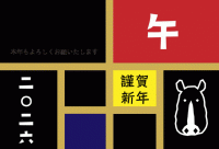 年賀状 2026 カラフルな升目と馬のイラスト(文字ありなし)